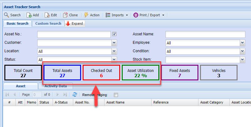 In order for the statistics to auto calculate the number of total assets and the asset utilisation percentage .
