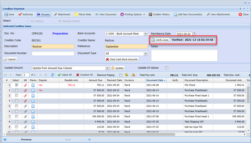 Supplier Payments batch includes a verify data to ensure that all lines are valid and checks for any changes