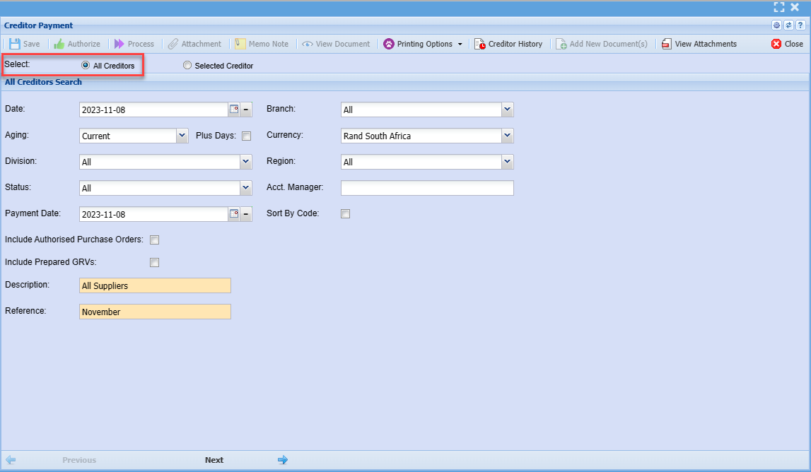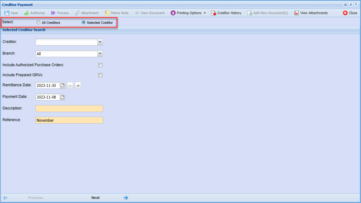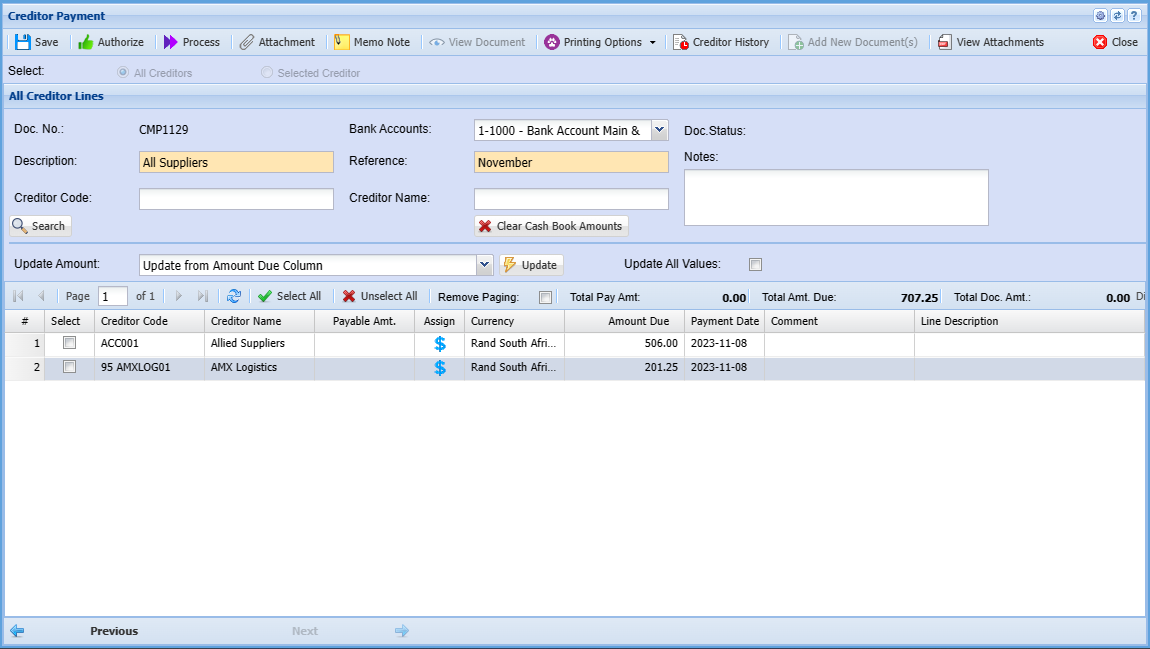| 3 | Updates allocation comments which are blank on the payment batch |