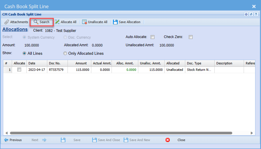 Fill in the information on the first 2 pages same as in Cash Book Adding Line on the 3rd page in Cash Book Split you can Seach and Allocate.