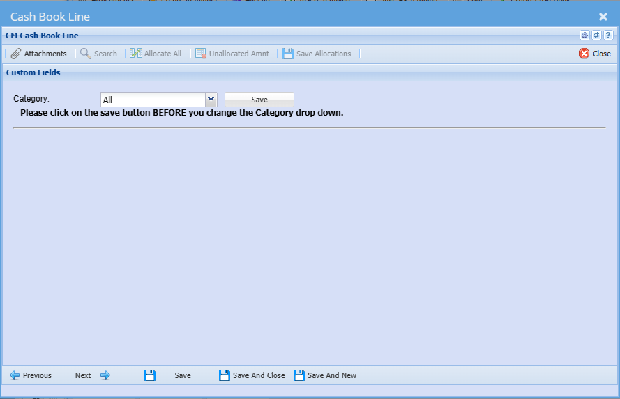 When you have entered the amount remember to save Allocations before closing this window
