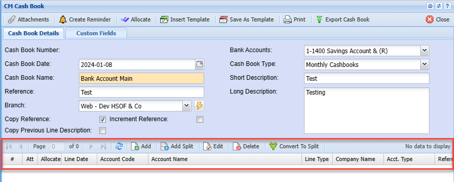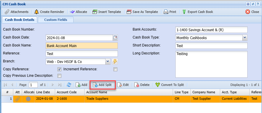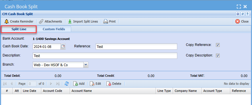 Adding New Line in Cash Book Split
