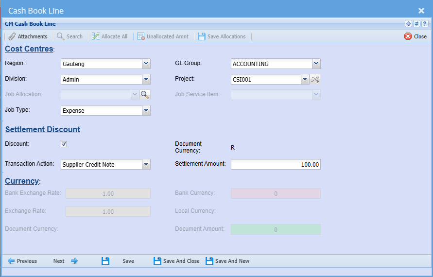 | Cash Book Date | |