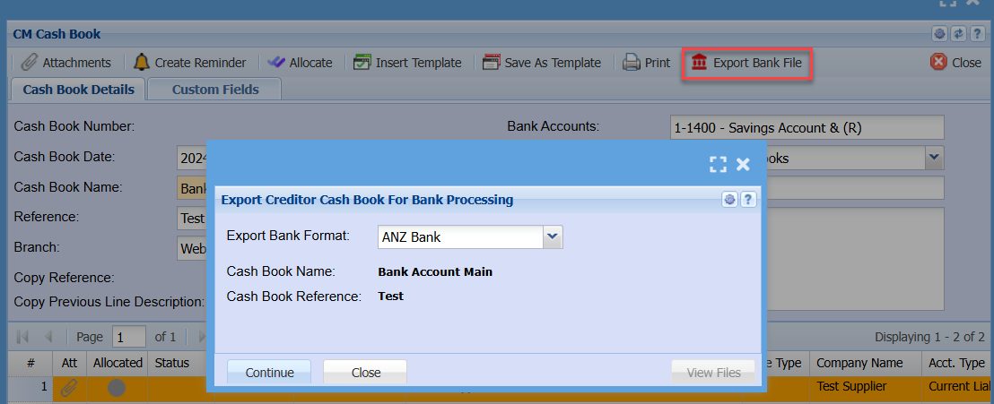 | Export Cash Book |