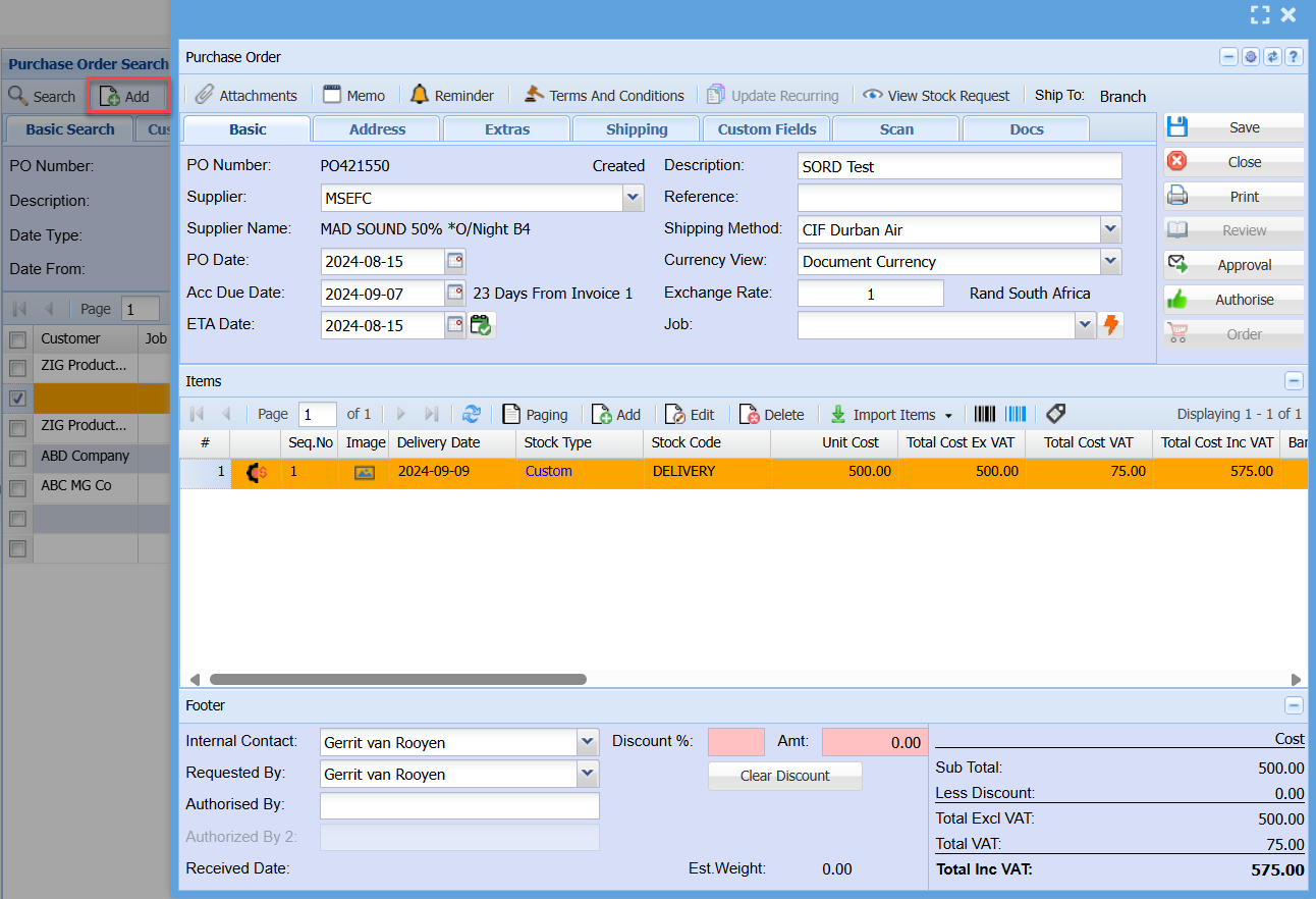 Adding Purchase Order