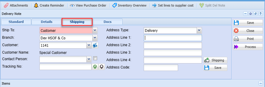 Edit Delivery Note