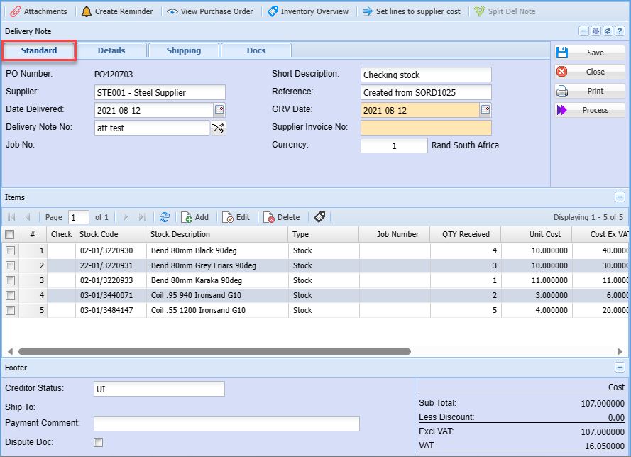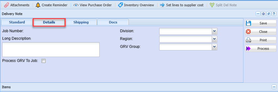 | Process GRV To Job | |