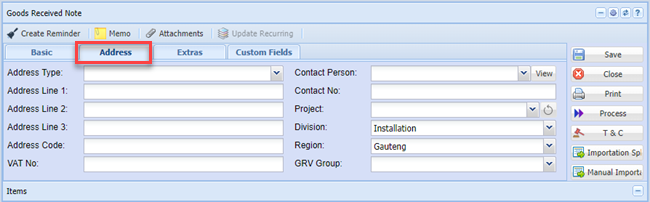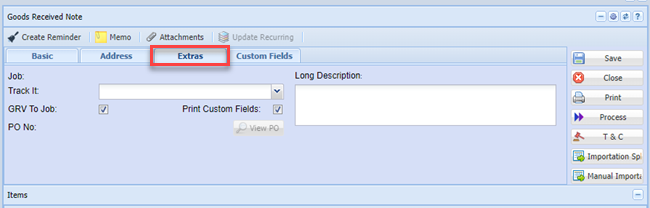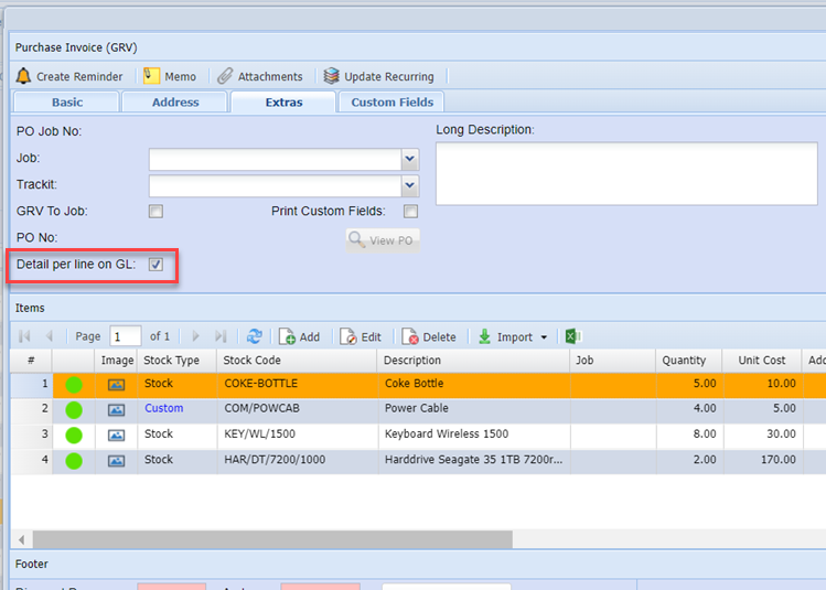 | Extra Tab | allows the user to view how the GRV was prepared from purchase order |