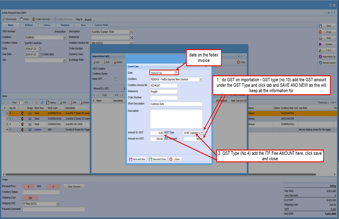 GRV with Importation Split from Purchase Order for ScanSku