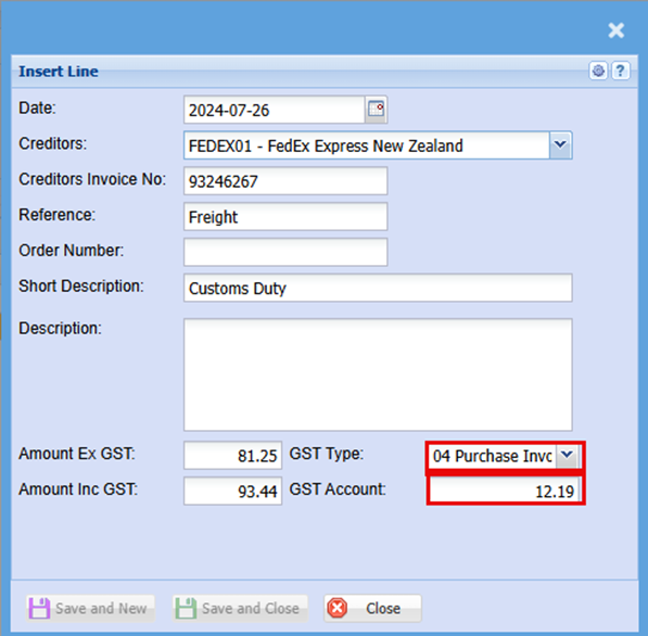 On this screen you are going to enter the details on the Shipping or Cartage company Invoice