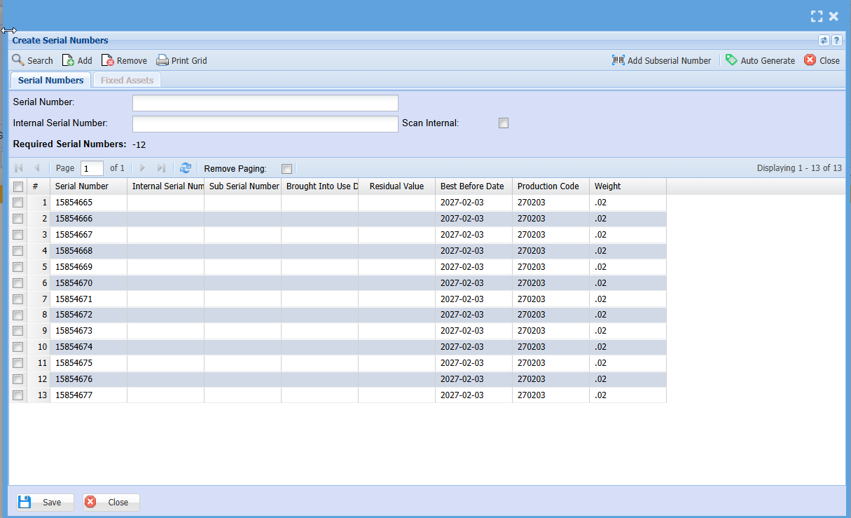 - Enter the serial numbers here, with each item listed on a separate line as shown below.