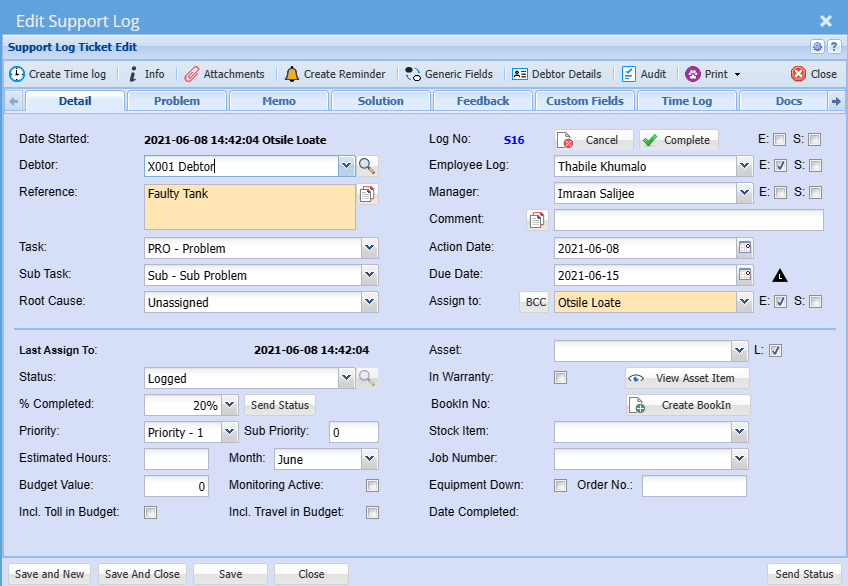 Assign To – search by selecting the person the support log is assigned to a certain user