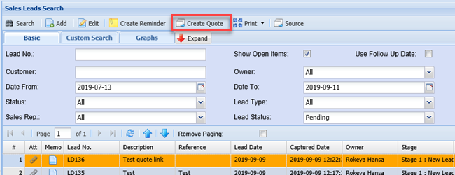 Create a Quote From Sales leads