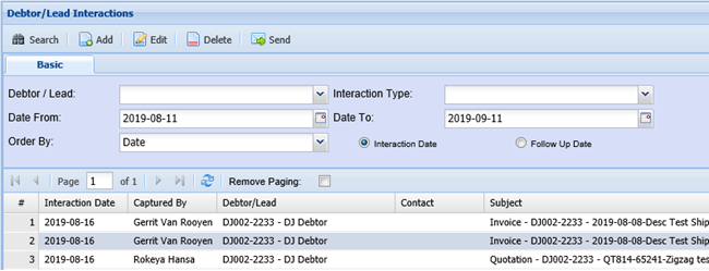 Debtor/Lead Interactions Help