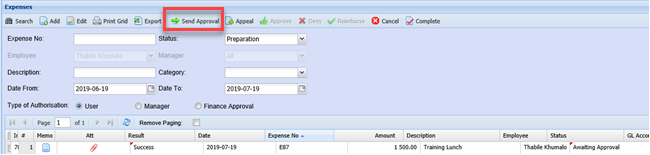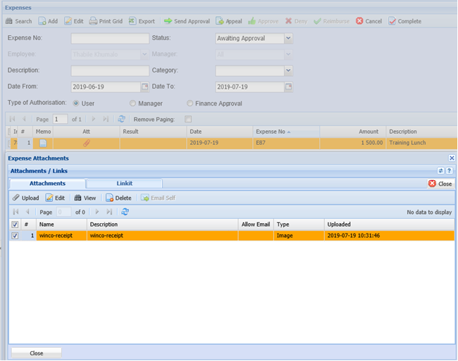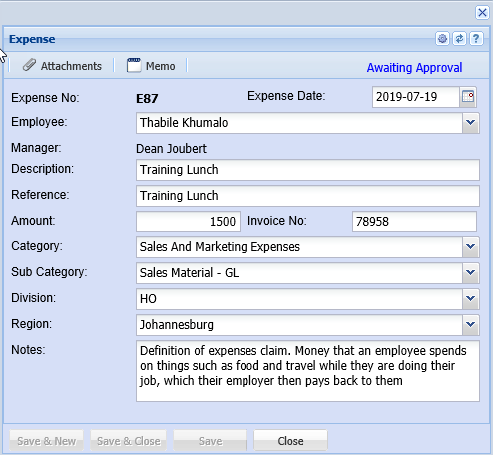 The status of the expense claim will now change to awaiting approval.