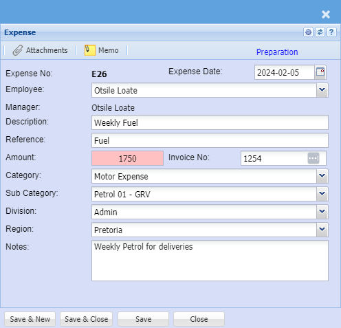 | Note | Allows you to add additional notes on the expense/ claim |