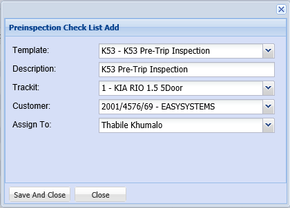 Allows the user to search, add, edit and delete pre-inspection checksheets