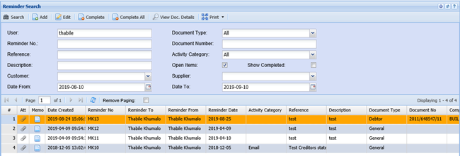 Date From – search by selecting the date and the system will pull out the reminders according the date selected