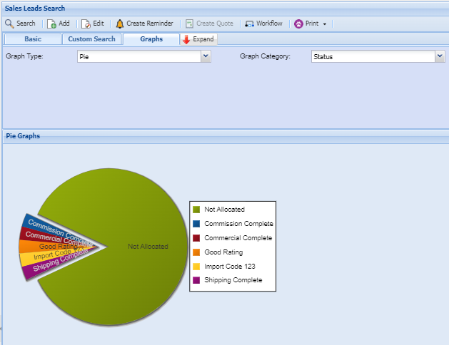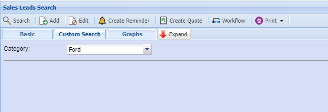 | Custom Search | If you have set up custom fields for sales leads you can search for the information on in this area. |
