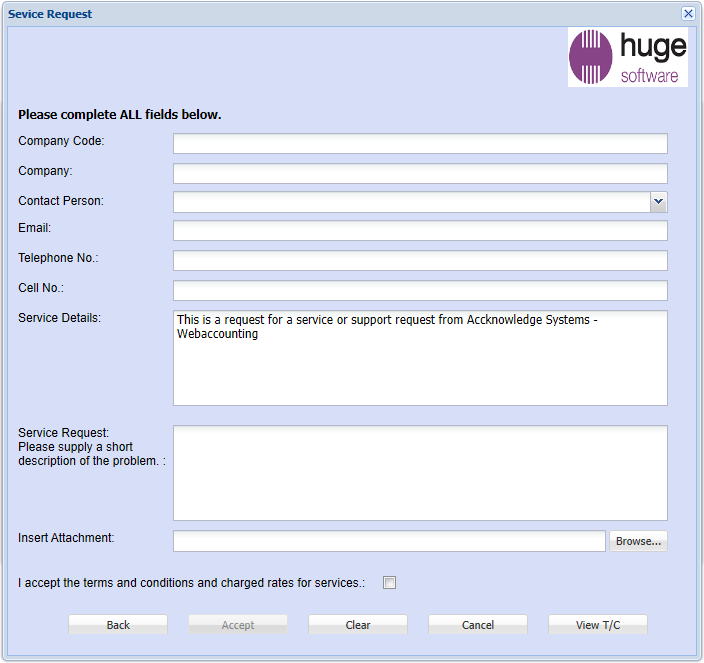 With Webaccounting we can integrate a logging system so that customers can go to your website, click on a support button and log a ticket.