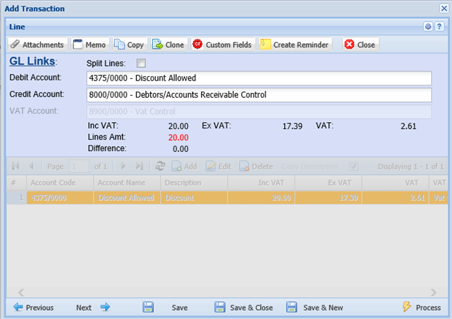 | Amount Inc VAT/GST | The amount entered will include VAT/GST |