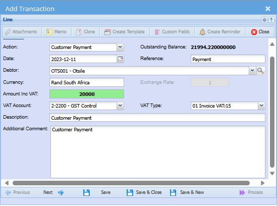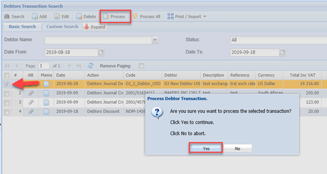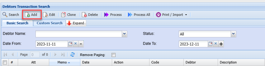 Add Debtors Journal Transaction