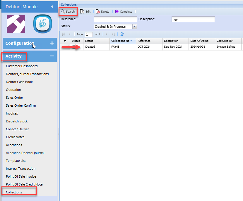 | Show All lines | Displays all debtor lines including the hidden lines that have been marked as collected |