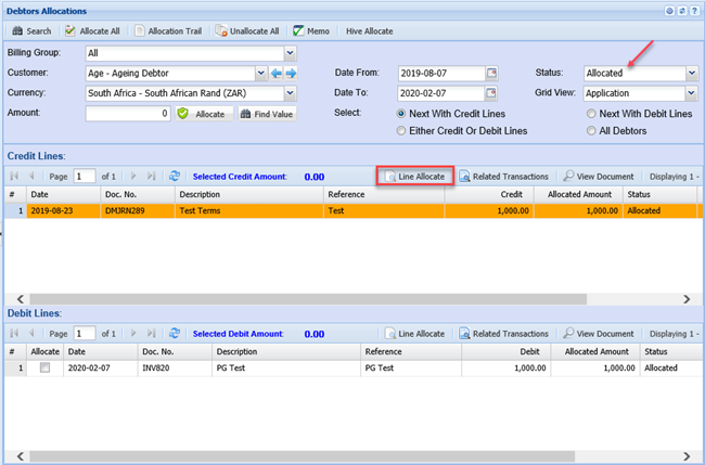 There are two ways to confirm an allocation. allocated column is the amount which has been allocated to the invoice you need to select your credit line and your debit line.