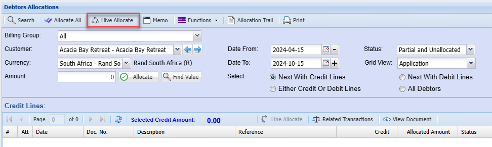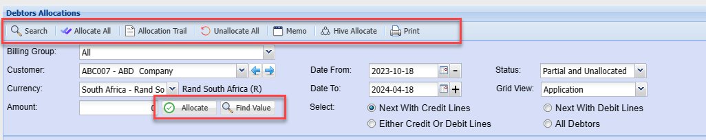 After you have allocated click on the search button to clear transactions which are fully allocated.