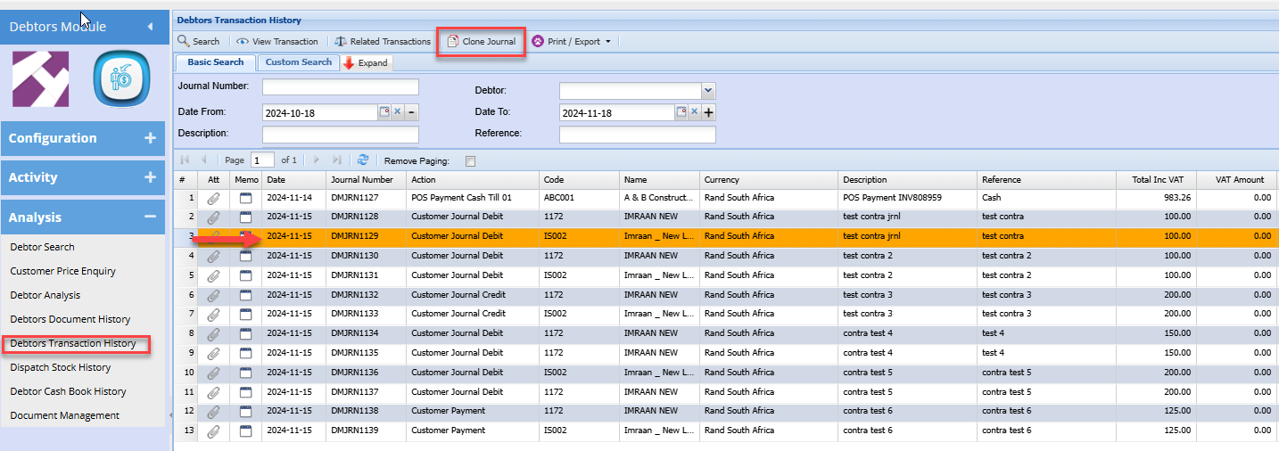 Import clone refers to loading an existing debtor from the system. All you need to do is make changes as per current journal.
