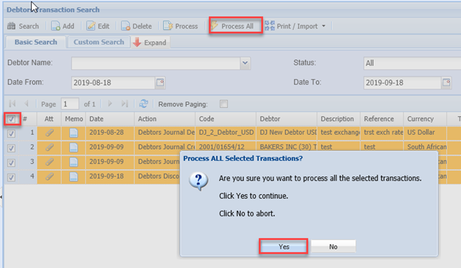 Debtors Journal Transactions
