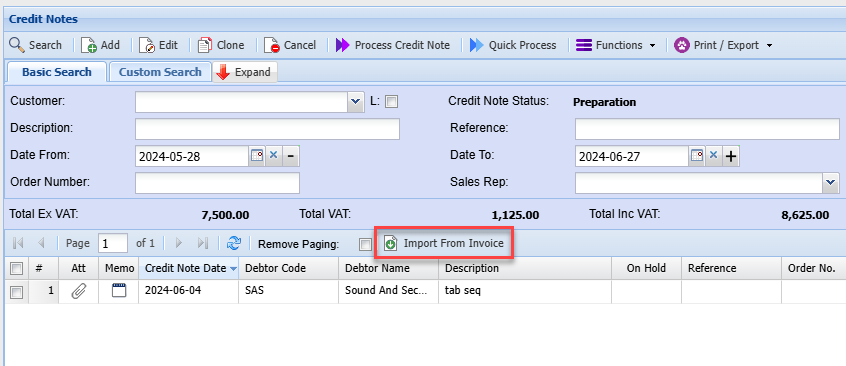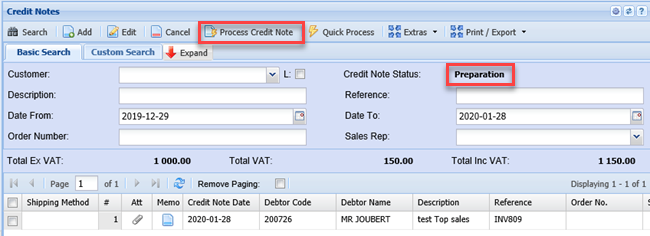 The credit note will now be under preparation status in the credit notes waiting to be processed