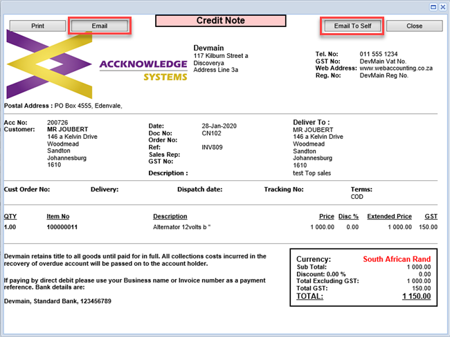 | Allocate to Invoice | Automatically allocate the credit note to invoice after processing the credit note |
