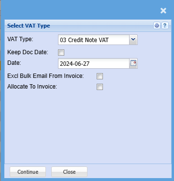 | VAT / GST Type | Select the correct Tax Type for Credit Note |