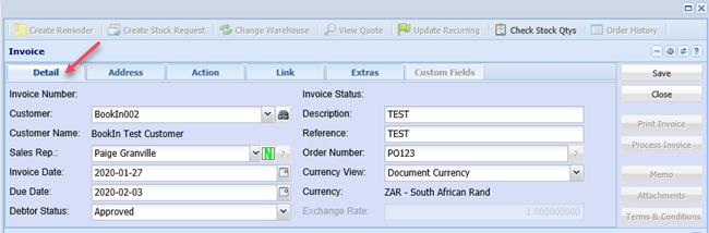 The new invoice screen will now appear. To start with a couple of fields need to be completed.