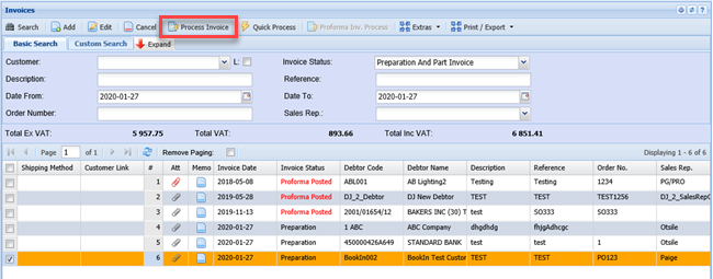 Once you are happy with the Invoice you can click on the Process tab and then the Process button.