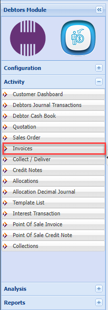 Begin by logging on to Web Accounting and clicking on Debtors module.