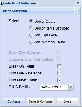 Quote Print Selection Popup Help