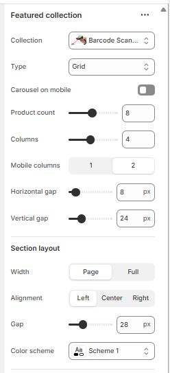 - Mobile columns: Choose between 1 or 2 products per row on mobile.