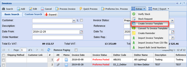 | For example | An Invoice Template Is created from an invoice menu |