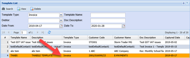 Debtors Module> Activity>Template List