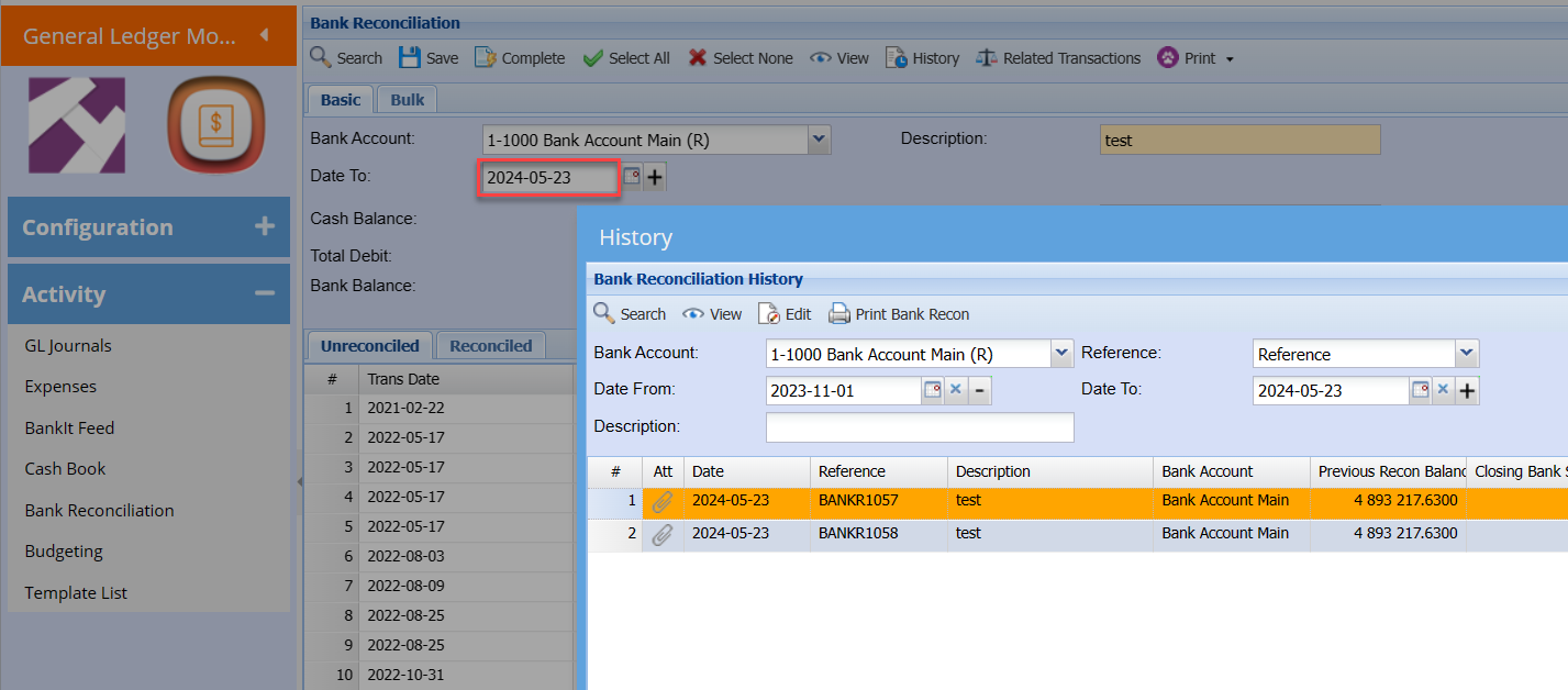 Bank Recon Date