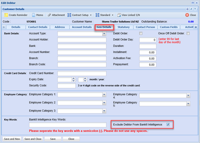 | Exclude customer from intelligence | use this to exclude the customer or supplier from the system intelligence |