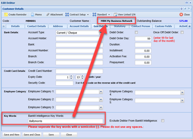 In the example below the MBN on the bank feed is not being picked up, however the Ballymorris and MBN will then find this customer.