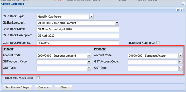 | 1 | Either use the default GL Account that is offered when the Create Cash Book button is clicked and there is a debit or credit GL Account to be selected there. These lines can then be edited again in the cash book to apply a different GL Account to it. |