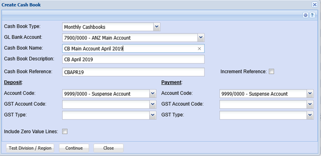 The Cash book Name, description and reference will pick up from the last created cash book from the BankIt.