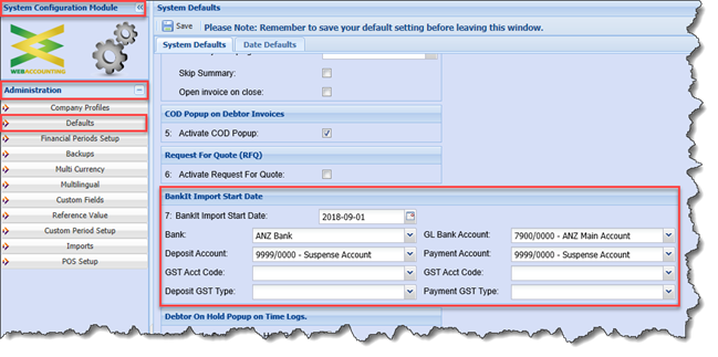 There are a couple of defaults that will populate the cash book screen so that you don't have to fill this in all the time.