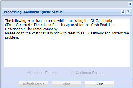 If you have an old cashbook that has not logged the branch, then one needs to update the lines.