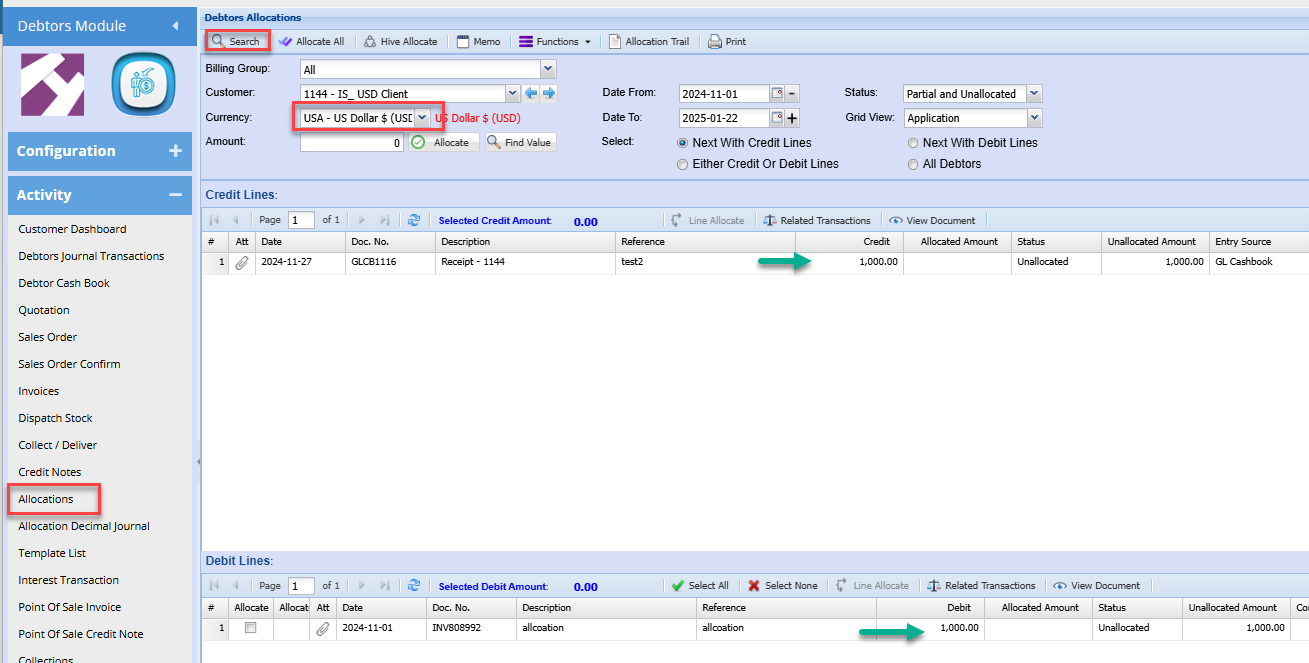 Using multicurrency will typically imply that you may have debtors that are invoiced in the USD as an example