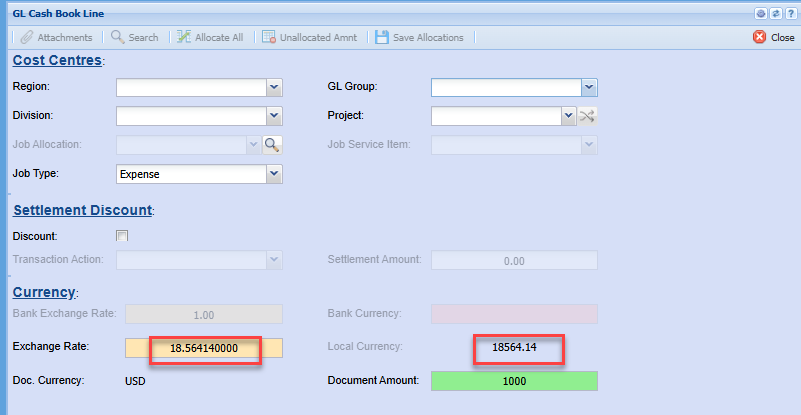 Note: the values may differ because the invoice would have been done at a different exchange rate to the receipt